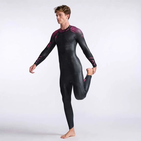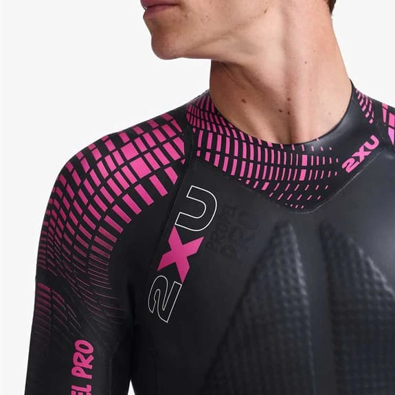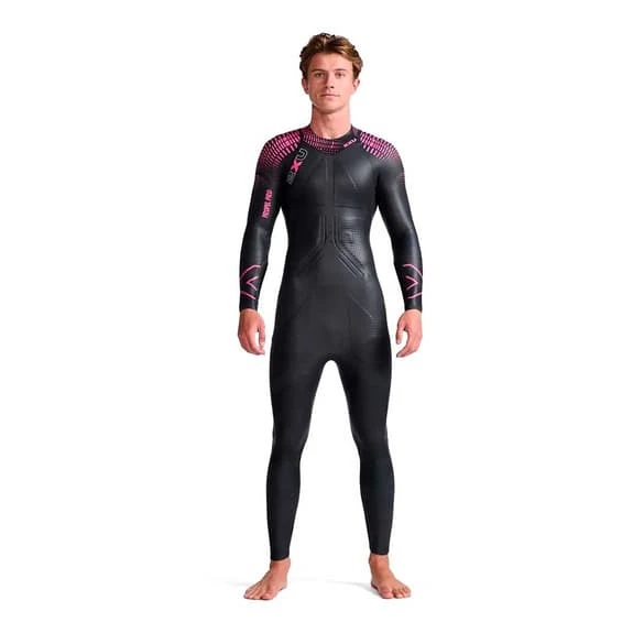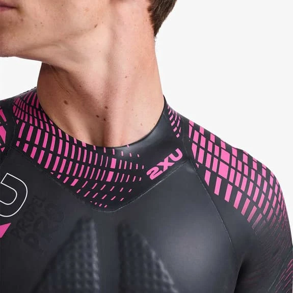 The 2XU Propel Pro long sleeve wetsuit is made with a hydrodynamic Super Composite Skin (SCS) coating that reduces surface drag for increased speed and improved durability. Velocity Strakes provide hydrodynamic stability in choppy water and help you swim in a straight line. The concave water catchment area on the sleeve improves power and water feel while the floating zip panel offers unrestricted movement for improved distance per stroke. It has a neck panel that eliminates seams to improve comfort and reduce chafing, while the inner lining is designed with 520% stretch to ensure comfort and low absorption.