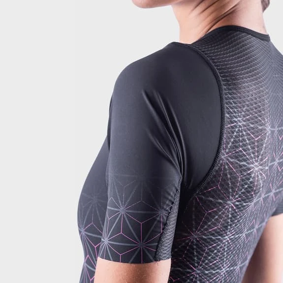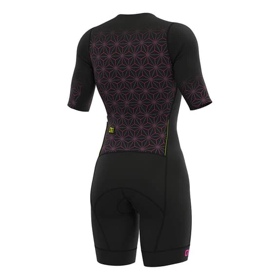 The Alé Maui Long short-sleeved trisuit for women is designed and tested by triathlon professionals, to provide a valid garment for all phases of competition. Its tight construction has an adequate capacity of ventilation and transpiration, both in the front and in the back. The back pockets have been designed to be easy to use during cycling and racing. Includes the New Tri chamois, specific for triathlon.