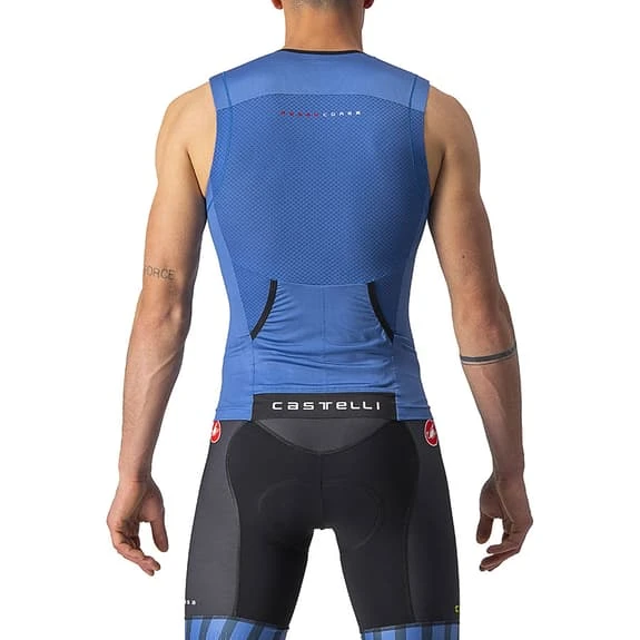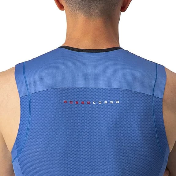 The Castelli Free Tri 2 Rosso Corsa sleeveless top has the most advanced features of the brand for Triathlon testing and training. The front fabric comes directly from the Tour de France-winning Aero Race jersey, and the back fabric offers maximum breathability. It has two generous pockets to store the necessary equipment. It features SnapLock closures that attach to the Castelli bib shorts to prevent the top from riding up during swimming and to maintain lower back coverage on the bike. In addition, they are easy to unhook for greater comfort during the race.