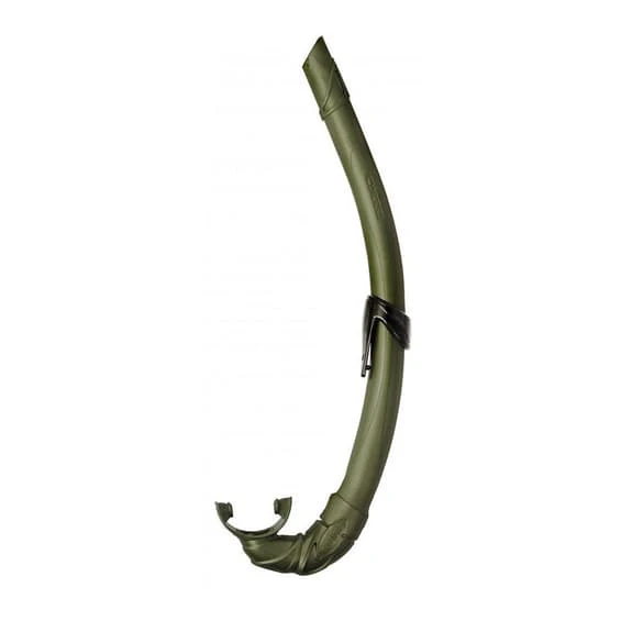 The Cressi Corsica snorkel is a completely new snorkel, initially designed for spearfishing but with special features that also make it suitable for scuba diving and snorkelling. The tube material is made of particularly flexible polyurethane with 100% elastic memory after being bent, folded or even knotted on itself for days. The wall section of the tube is designed to maintain the necessary rigidity in the pressure area of the mask strap so as not to impair air circulation in this area when used with the mask strap attached. The very comfortable mouthpiece has a design that combines different thicknesses to favour self-orientation and relieve tension on the user’s jaw. The area in contact with the gums is exceptionally flexible and of minimal thickness. The nozzle/tube connection is particularly safe against accidental separation.