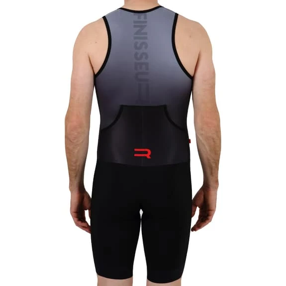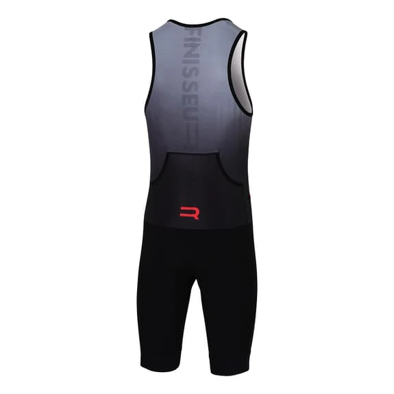 The Finisseur Pro Gradient Sleeveless Trisuit is made from a new aerodynamic fabric that is water and chlorine resistant. The drying is very fast, improves swimming performance, and makes transitions much more enjoyable.