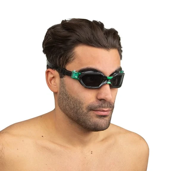 Seac Aquatech swimming goggles with tinted lenses for children are made of high quality hypoallergenic bio-silicone. The goggles have a wide 180-degree vision and anti-fog and anti-scratch lenses that are also 100% protected against UV rays.