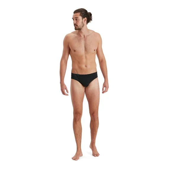The Speedo Tech Placement 7cm Brief features a grey hexagonal print on a classic black background. With a waist strap for added security, this style is ideal for regular pool training sessions. The Endurance10 fabric contains Creora HighClo, ensuring that the suit fits like new for longer. It’s soft and elastic, so you can enjoy your bath with nothing to limit you.
