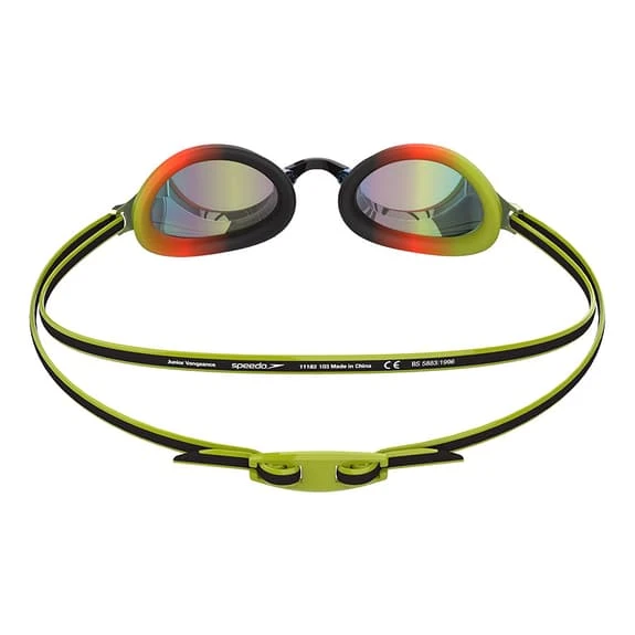 Speedo Vengeance Mirror Junior swim goggles with mirrored lenses have a more hydrodynamic profile to cut water without resistance. With interchangeable nose bridges and its double headband you can get the perfect customized fit.