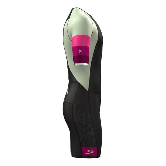 - Triathlete’s aero sleeve suit with a unique patterning focused on achieving maximum performance