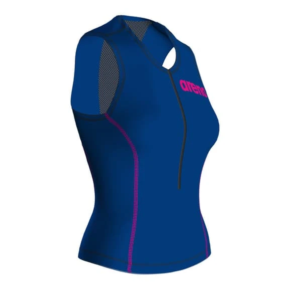 The Arena ST 2.0 women’s sleeveless triathlon top is designed with two high-performance textiles. It is a very elastic piece, thanks to the Xtra Life fabric and offers a good compression thanks to the X-Raptor fabric.