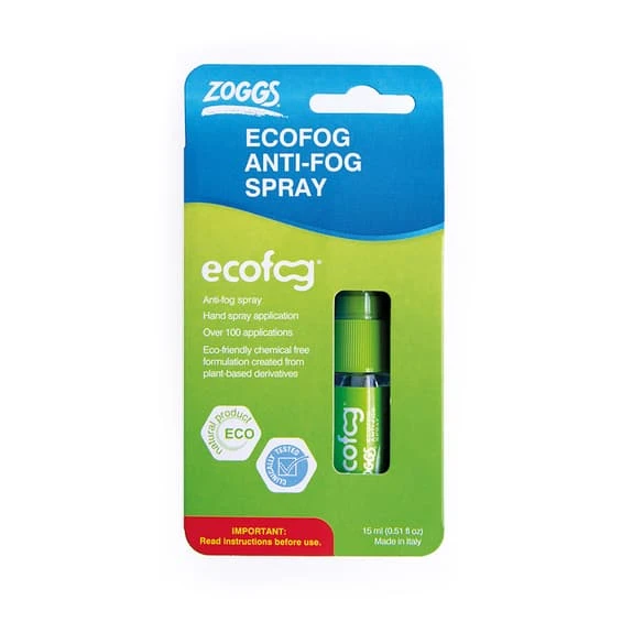 Zoggs EcoFog anti-fog spray is environmentally friendly. It is exclusively formulated with raw materials of natural origin, totally biodegradable and safe.