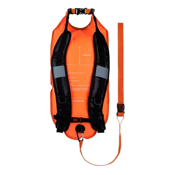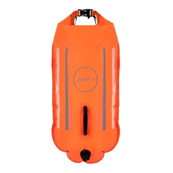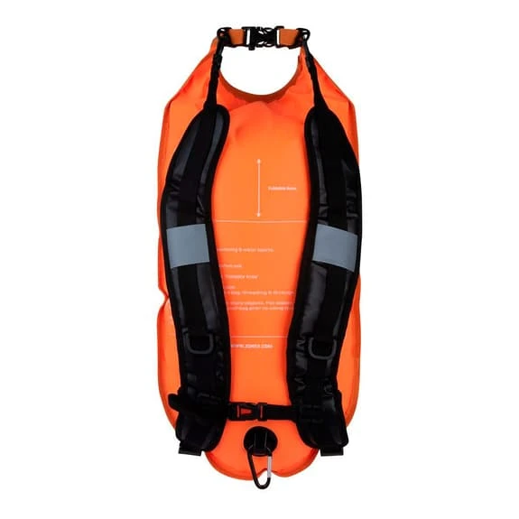 The Zone3 2 Led Light 28L buoy converts to an LED backpack and includes reflective logos and LED lights with strobe option for low light conditions and increased visibility.