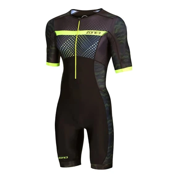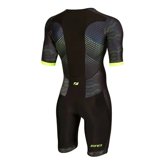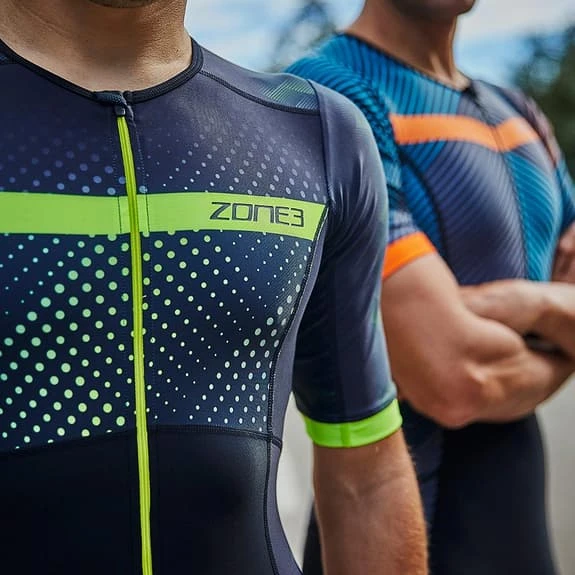 The Zone3 Activate Plus Revolution short-sleeved men’s trisuit has become a standard element in the triathlon world. The new Activate Plus Revolution collection goes a step further with a new high-tech embossed mesh fabric on the back panel and the integration of a dynamic print to add some life to training and running.